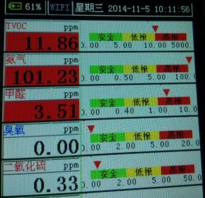 1、下圖是儀器通上101ppm的氨氣,請注意TVOC的濃度值。TVOC顯示11.86ppm。這和準確度有什么關(guān)系呢?請看第2張圖解答真相。