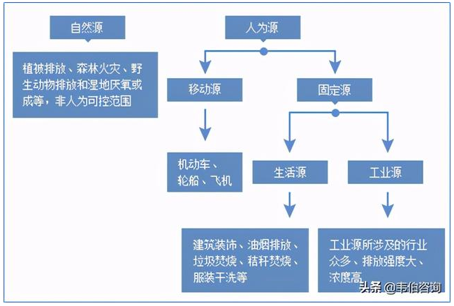 VOCs人為源包括移動(dòng)源和固定源,固定源中又包括生活源和工業(yè)源等。移動(dòng)源是指汽車、輪船、飛機(jī)等各種交通運(yùn)輸工具的排放。生活源VOCs排放對(duì)象復(fù)雜,包括建筑裝飾、油煙排放、垃圾焚燒、秸稈焚燒、服裝干洗等等。