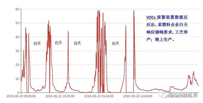 3、VOC超標報警監(jiān)測系統(tǒng)是企業(yè)錯峰生產時“自證清白”的有力證據。臭氧濃度高峰時大氣污染防治部門一般要求采取錯峰生產,高溫時段10-16時涉VOCs排放單位不得生產,通過VOCs監(jiān)測數據的變化可以直接反應企業(yè)是否落實錯峰生產制度,為企業(yè)提供數據支持。