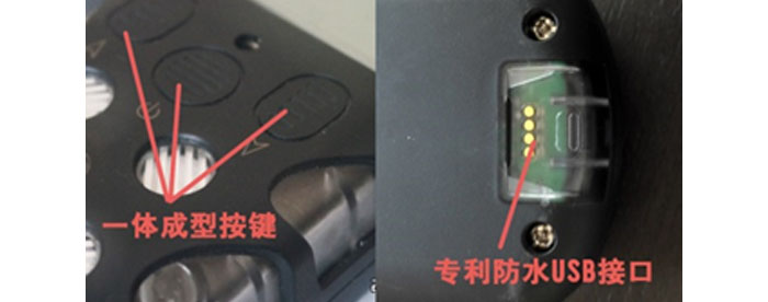 像上便攜式氣體檢測(cè)儀,按鍵與殼體為一體式設(shè)計(jì),同時(shí)具有專利設(shè)計(jì)的充電口無(wú)裸露部分,杜絕進(jìn)灰進(jìn)水可能。