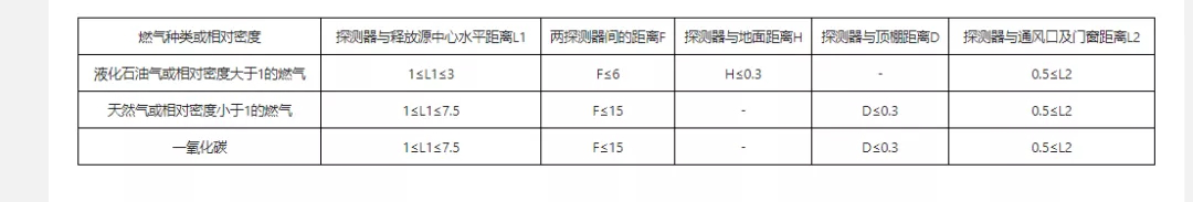 四、當(dāng)燃?xì)廨斉湓O(shè)施位于密閉或半密閉廠房?jī)?nèi)時(shí),應(yīng)每隔15m設(shè)置一個(gè)探測(cè)器,且探測(cè)器距任一釋放源的距離不應(yīng)大于4M。